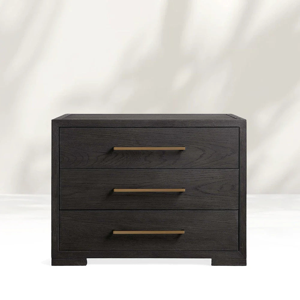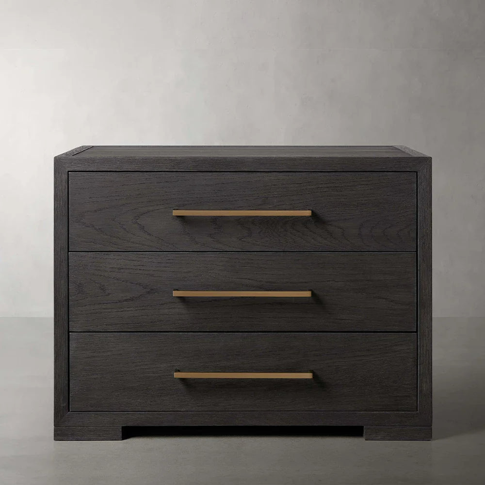 Celebrating expert craftsmanship, our Darwyn Collection is designed for creating the suite of your dreams. Crafted from solid oak wood and oak veneers with a hand-applied finish, Darwyn’s subtle grooved border and brass handles will add contemporary sophistication to your bedroom.