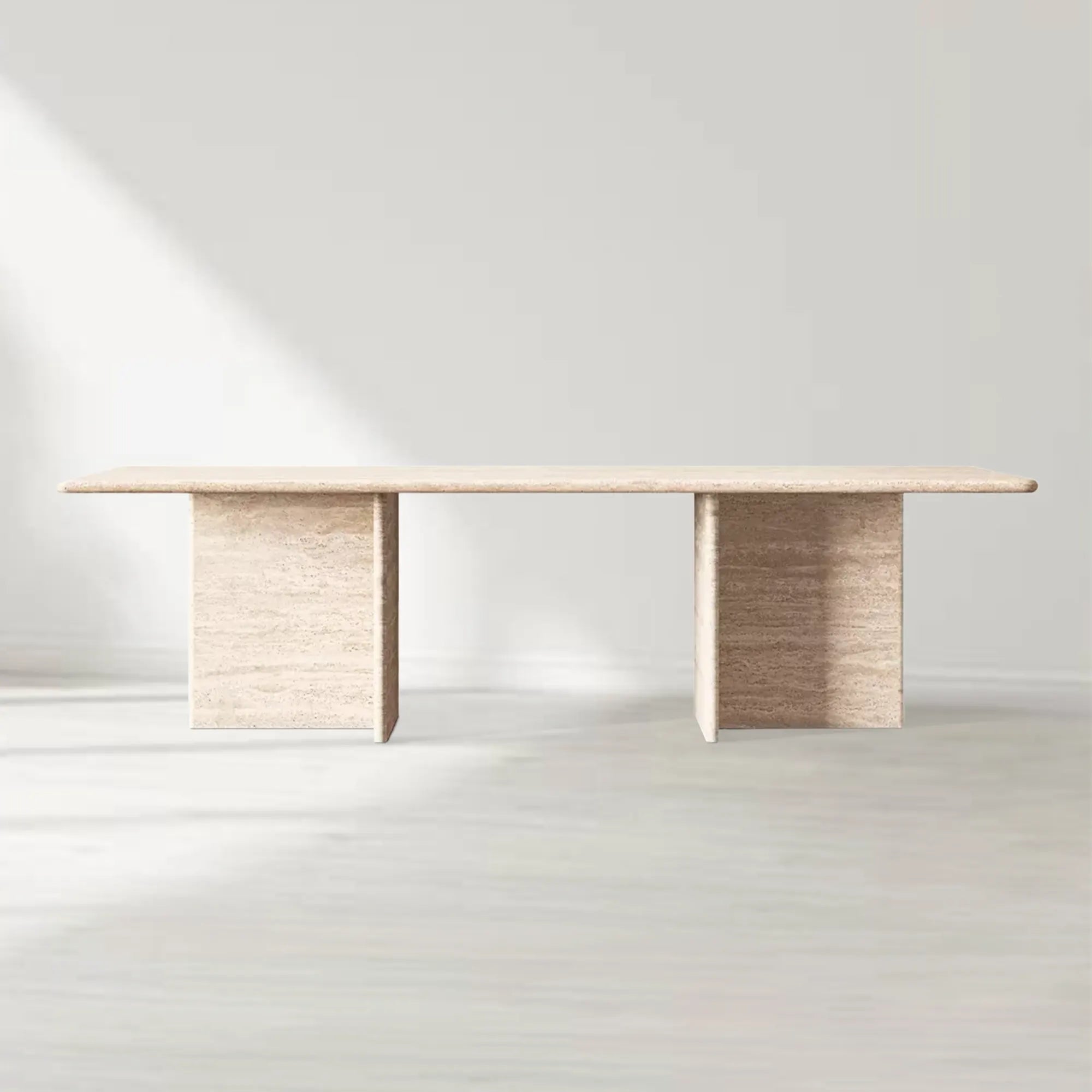 Handcrafted of Italian travertine or marble, Marco's minimal geometry is softened by rounded edges. The stone's richly variegated veining lends a timeless quality to the modern silhouette.